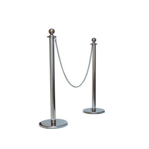Model No: PH/QM/07 "Chain Size: 1.5 meters Pole Size: 34 x 2 inches Pole Thickness: 1 mm Base Size: 12 inches Dia Curve with Double Embossing Weight:6 Kgs|Material: SS 202 Grade Chain Colour: Silver